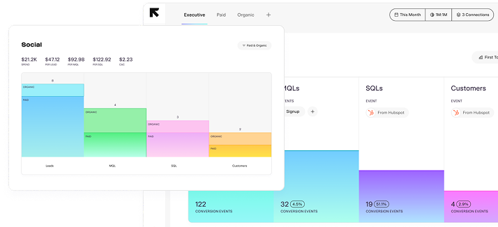 The free plan includes unlimited syncs, core attribution fields, and out of the box dashboards so you can see value immediately.